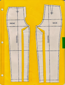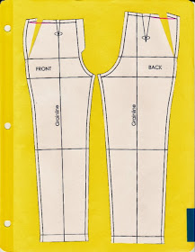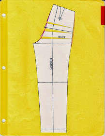 #1) Crotch curve corrections: I did the back alteration to correct the mono-butt look. By giving more fabric to the back piece, one avoids having the fabric pulled so tightly across the butt that it becomes unnecessarily flattened.